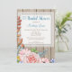 A charming rustic bridal shower invitation featuring a pretty pink rose bouquet on a wood background with white lace frame. Perfect for a country bridal shower theme.