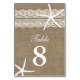 Rustic Lace & Starfish Burlap Wedding Table Cards.