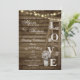 Vintage wood ladder with LOVE letters and a canning jar full of baby's breath decorate this country rustic wedding invitation suite. Sparkly twinkle string lights add extra charm over the dark barn wood background. Reception information and details on reverse side on this version can be deleted or changed as preferred when editing.