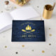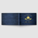 A beautiful, rustic themed guest sign in book, featuring your family name and "Lake House" or other desired text. This custom, unique design features a gold foil silhouette of crossed boat oars and pine trees on a print of wood planks in rich blue colours. Perfect for your vacation rental or summer guest home.