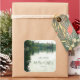 These rustic lakeside evergreens wedding thank you stickers feature a beautiful rustic scene under an overcast sky with lightly rippled but calm water reflecting distant evergreens, cedar trees and rock structures, perfect for a mountain, lakeside, or riverside wedding celebration - by katz_d_zynes