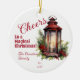 Rustic Lantern Pine and Berries Cheers Christmas Ceramic Tree Decoration