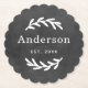 This simply elegant custom monogrammed beverage coaster features white leafy laurel branches that frame a family last name. A beautiful keepsake gift for newlyweds or new homeowners. The rustic black background image can be removed and printed background colour can be modified so the design perfectly coordinates with your home decor.