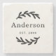 This simply elegant custom monogrammed beverage coaster features leafy laurel branches that frame a family last name. A beautiful keepsake gift for newlyweds or new homeowners. Black design colours can be modified to coordinate with your home decor.