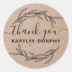 Rustic Laurel Leaf Thank You Calligraphy Classic Round Sticker