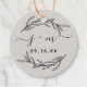 Rustic earthy favour tag with laurel leaves, script initials and modern date.