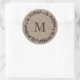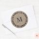 Rustic Laurel Wreath Farmhouse Style Monogrammed Classic Round Sticker - a unique farmhouse style sticker. Your monogram is surrounded by a rustic laurel wreath on a burlap background. Perfect for personal or business.