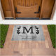 Country rustic light grey wooden barn planks doormat with your personalised family name and monogram letter in dark grey. Get an elegant farmhouse chic look for your front porch this fall with this stylish wood planks and laurels doormat. Give as a great thoughtful gift for newly weds or new home owners.