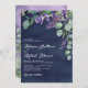 Rustic Lavender and Eucalyptus Navy Blue Wedding Invitation