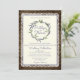 Elegant and romantic lavender floral wreath design with dark brown rustic barn wood and scalloped lace framing of the ivory background. This unique nature and vintage inspired wedding invitation set is sweet as can be.