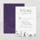 This rustic lavender and eucalyptus song request RSVP card is perfect for a simple and elegant outdoor wedding. The floral design features watercolor eucalyptus leaves and greenery with sprigs of purple wildflowers. Build your wedding guest list and your dance floor song list all at once! This wedding response card conveniently asks guests if they will be able to attend your wedding, and also what song will get them to dance.