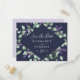 This rustic lavender navy blue save the date postcard is perfect for a simple and elegant outdoor wedding. The floral design features watercolor eucalyptus leaves and greenery with sprigs of purple wildflowers on a dark blue background.