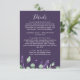 This rustic lavender purple details enclosure card is perfect for a simple and elegant outdoor wedding. The floral design features watercolor eucalyptus leaves and greenery with sprigs of purple wildflowers on a plum purple background.