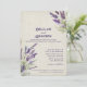 Lavender blooms and an aged, crackled background give a rustic country vibe to this pretty wedding invitation. Modern type styles. This all-in-one invitation gives your guest all the info they need to know to help you celebrate your special day. R.S.V.P. info, registry info and a spot for your wedding website are all included on this simple invitation.