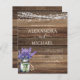 Rustic Farmhouse String Lights and Jar of Baby's Breath Wedding Invitations on Wood background - includes beautiful and elegant script typography with modern Country Farm House Sparkle for the special Wedding day celebration.