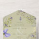 ALSO AVAILABLE WITH A QR CODE TO SCAN IN THE RSVP AREA. This design features lavender, pale blue, and white wildflowers with delicate greenery on a light sage background. Personalised All-In-One invitations are a unique combination of both a beautifully printed custom invitation with an easy to tear off perforated RSVP postcard. And they are so easy to use! You simply fold, then seal the back flap with the three included clear stickers, and mail. And when your guests receive your custom invite, they just tear the perforated RSVP Card off and drop it back in the mail to you!