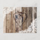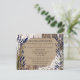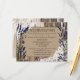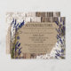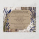 Navy blue lavender flowers over linen-look pattern, white chantilly lace, and barn wood background rustic wedding accommodations card.