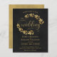 Rustic Leaves Black & Gold BUDGET Wedding Invite