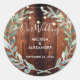 Rustic leaves on wood string lights wedding classic round sticker
