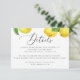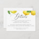 Complete your wedding stationery suite with this lemon grove details card, designed to share important information with your guests. Featuring watercolor lemons and lush greenery, it adds a fresh Mediterranean orchard feel to your wedding collection while keeping your details clear and elegant. This enclosure card is perfect for providing hotel accommodations, travel directions, wedding website links, or reception details. The refined mix of modern serif and romantic script typography makes it both stylish and functional. Ideal for couples hosting a summer wedding, Amalfi Coast inspired celebration, rustic vineyard event, or Mediterranean garden reception. This citrus wedding insert keeps your guests informed while enhancing your stationery theme.