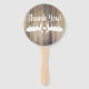 Rustic elegant white moose antlers and light brown barn wood print favour fans.