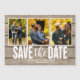 Announce your wedding day with this rustic country chalkboard three photo collage save the date.