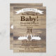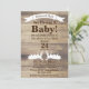 Rustic baby shower invitation with a warm rustic feel of barn wood planks and moose antlers silhouette. The backside features another antlers silhouette around a heart.
