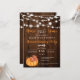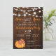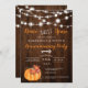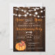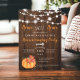 Rustic lights home sweet home housewarming party with white string lights, modern elegant typography, and white key on a rustic brown wood with an elegant hand painted watercolor orange pumpkin with flowers, floral leaf and gold glitter confetti. Celebrate your new home in style.