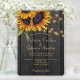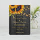 Elegant chic summer or fall wedding stylish invitation template on dark brown barn wood featuring a beautiful sunflowers bouquet and strings or twinkle lights. Fill in your information in the spots, You can choose to customise it further changing fonts and colours of lettering. --------- The invitation is suitable for elegant summer or autumn fall rustic country weddings. -- If you need assistance in customising it, please contact me!
