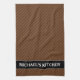 This simple kitchen towel design features dark brown and lighter brown stripes/lines, inspired by rustic settings. It also features a customised name.