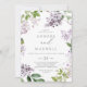 This rustic lilac all in one wedding invitation is perfect for a spring or summer wedding. The romantic and elegant floral design features watercolor purple lilac wildflowers with a boho country garden feel. Save paper by including the details on the back of the wedding invitation instead of on a separate enclosure card. Include the RSVP info as well if your guest will be replying electronically (optional).