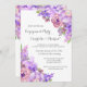 Custom engagement party invitations in a rustic pattern with vintage purple lavender lilac watercolor wildflowers.