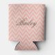 Rustic Linen Beige and Pink Chevron Monogram Can Cooler