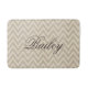 Custom printed bath mat rug with a trendy chevron pattern and rustic faux linen texture. Personalise it with your name monogram or other custom text. Click Customise It to change text and fonts to create a unique one of a kind gift.