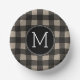 Rustic Linen Black Buffalo Plaid Pattern Monogram Paper Plate