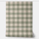 Rustic Linen Buffalo Check Beige and Green Plaid Wallpaper