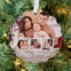 Rustic Linen & Happy Holidays Script Multiphoto Tree Decoration Card