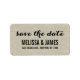 Rustic Linen Script Wedding Save the Date Address Label. Design by Elke Clarke© for MonogramGallery printed by Zazzle. Send out your save the date cards to your friends and family using this beautifully, simple label with the words "save the date" written in a white hand writing typography script text overlay. Printed photo effect of beige linen background. Other colours available.