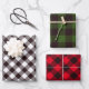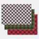 Stylish and festive, this gift wrap set is the perfect way to wrap your gifts this holiday season. The design features three rustic, country, farmhouse or lumberjack style patterns: 1. black and white flannel plaid pattern, 2. black and green flannel plaid pattern, and 3. red and black flannel plaid pattern.