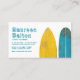 Surfer beach adventure-themed typography business cards with accents of turquoise and lemon customisable to your specifics.