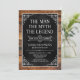 He IS The Man The Myth The LEGEND! His life has been an amazing adventure and it's time to celebrate his legacy and him. This rustic wood backed textured black paper with white type and and white scrolled corners 65th Birthday invitation is perfect for inviting friends and family to join you in honouring and celebrating this incredible milestone birthday! To see your unique invitations click on "Personalise this Template" and type in your information. It's super easy!
