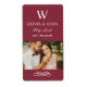 Elegant white serif typography pairs with a monogram initial on this rustic maroon red wedding wine bottle favour label. Designed to wrap around mini wine bottles for a memorable reception keepsake. Personalise with the couple's names, monogram, wedding date, and add your own photo. A sophisticated finish for every wedding favour.