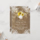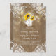 Rustic country engagement party invitation features sunflowers, string lights, mason jar, baby's breath flowers, wood, and lace