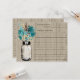 RECIPE CARD: Perfect for a country style Bridal Shower or maybe you just love Mason Jars for any event! Mason Jar hanging on a hook filled with country wildflowers. A Rustic Tan Barn Wood Background with the hanging Mason Jar and wildflowers in colours Teal, Light Curry Yellow, Aruba Blue and Rust Brown. If you have any questions on this design or want a colour change please email me paula@labellarue.com Also check for the Wedding Suite, INVITATION, RSVP, RECEPTION and GUEST SEATING Cards to match!
