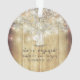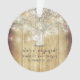 We're engagement rustic country ornament with mason jar, baby's breath flowers, string lights and bar wood texture