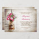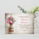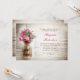 Romantic rustic wood background and mason jar with dark pink flowers bridal shower invitations. I suggest a beautiful texture linen paper for this design.