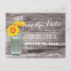 Rustic Mason Jar & Yellow Daisy Wood Save the Date Announcements.