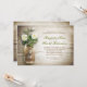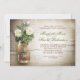 Romantic rustic wood background and mason jar with white flowers engagement party invitations. I suggest textured linen paper for this design.