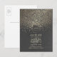 Rustic mason jar and fireflies save the date postcard with chalkboard background and faux gold foil confetti