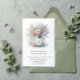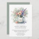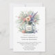 This rustic wedding invitation radiates countryside elegance with its soft watercolor illustration of a mason jar brimming with wildflowers in shades of pink, purple, and cream, accented by lush greenery. The hand-painted style lends a gentle, romantic touch, while the mason jar evokes a sense of vintage charm and homespun warmth. Balanced and airy, the design feels perfect for a vineyard or garden celebration—inviting guests into a day filled with love, nature, and heartfelt simplicity. Personalise the label on the jar and the rest of the invitation.